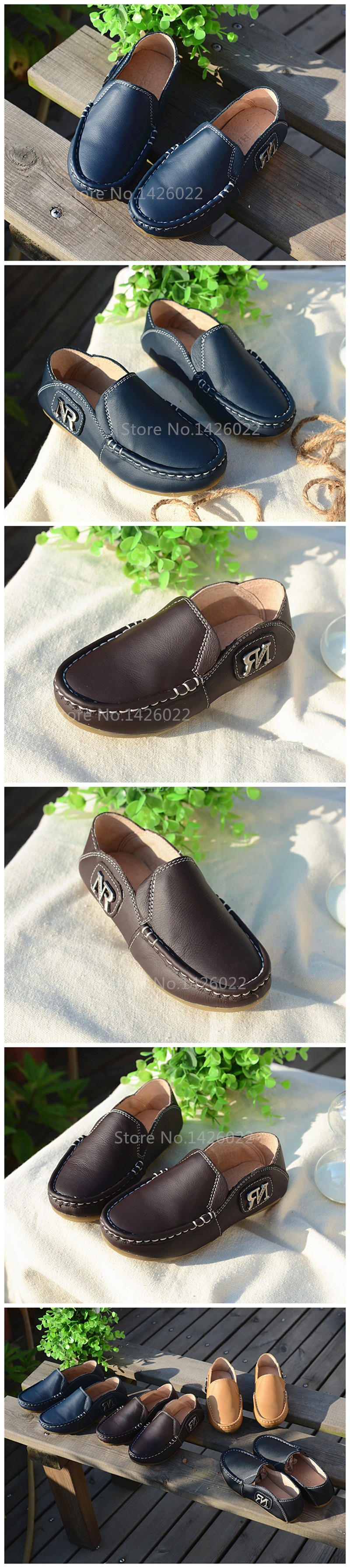 Order Genuine Leather Boys Leather shoes Fashion Children's moccasin-gommino Shoes Boys school Shoes Non-slip Children Sneaker